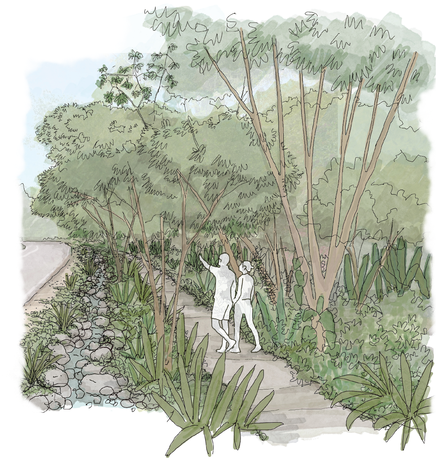 We designed our community to preserve the natural sanctuary of the property: our conservation management plan has the simple objective of promoting biodiversity in El Bosque and beyond. Only 30% of the entire site will be built upon, and the rest will remain undeveloped land that all residents, including our animal friends, can easily access and enjoy freely. Our network of trails throughout the property makes it easy to move safely about the site and connect deeply with the natural life around us.